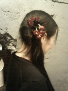 バラで髪飾りを作っていただきました!