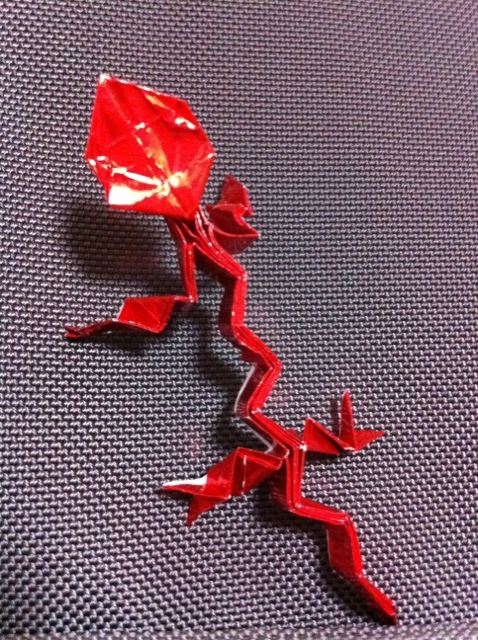 きらきらする折り紙で作ったトカゲさん。