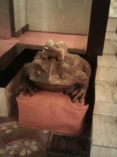 ホテルに大きなガマガエルさんが。