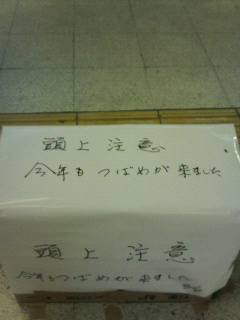 <頭上注意、今年もつばめが来ました>