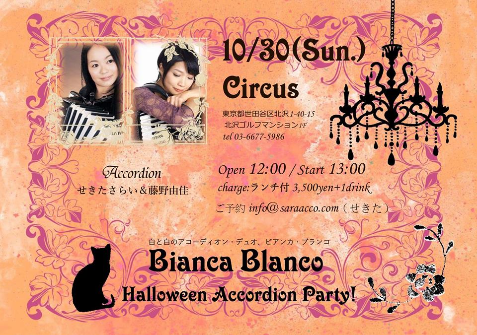 30(日)はアコーディオン藤野由佳さんとのデュオ「ビアンカブランコ」のライブです。