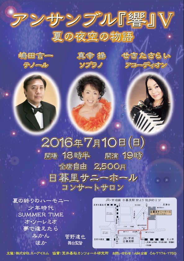 アコーディオン好きな方も、歌好きな方も、ご都合よろしければぜひ聞きにいらしてください☆