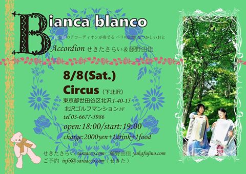 来月の話ですが、8日(土)は藤野由佳さんとのデュオ「ビアンカブランコ」で
