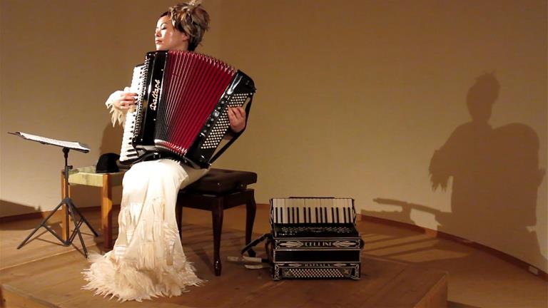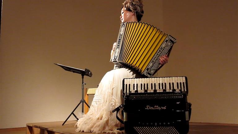 今回もドレスはアコーディオンに似合うようにデザインしてもらいました。