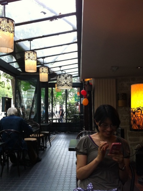 墓地そばの、メニルモンタン通りのカフェでひとやすみ。