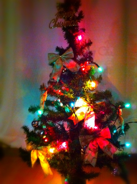 それから、ツリーとともに、うちのくまもサンタさんに変身。